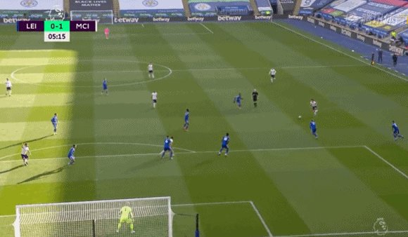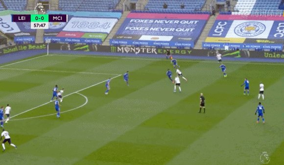 58'曼城二次进攻,门迪禁区内得球摆脱后右脚巧射破门,曼城1-0领先!