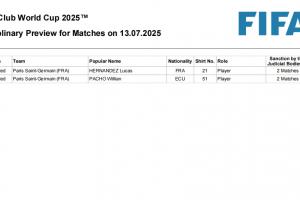 国际足联官方公布本场比赛的停赛名单,巴黎后卫帕乔和卢卡斯继续禁赛,切尔西无人停赛。